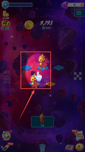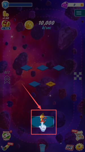 2、接着,点击屏幕每秒赚金币,把余额从10,000慢慢涨到解锁门槛。