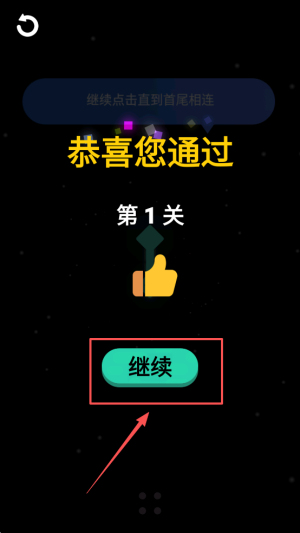 4、每通过一关,都会弹出「恭喜您通过 第X关」,点击「继续」挑战下一级。