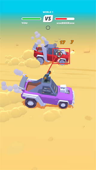 3、走位射击博弈深度,需一边控制战车规避沙丘障碍、绕开流沙,一边预判对手移动轨迹瞄准射击,“移动中精准命中”成为核心操作。