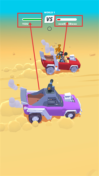 3、战斗中关注上方【YOU】和【xxxRIDERxxx】的血量条,保持自身血量优势,持续攻击对手。