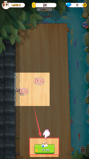 3、用「Free」初始金币购买第一只猫,把它放到房间自动赚币(0.00/5秒)。