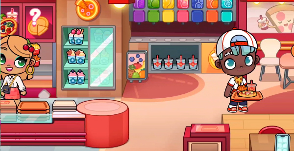 点击上面的招牌就会出现披萨啦,有披萨还有可爱的人物