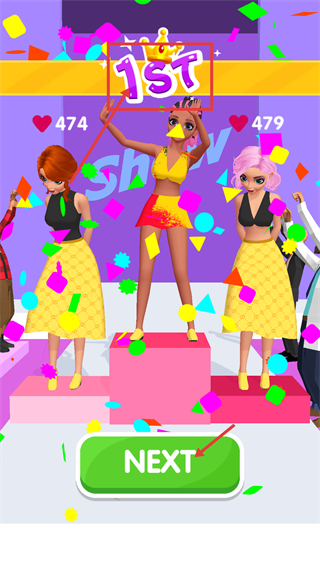 4、获得【1ST】排名后,点击【NEXT】按钮,继续参与下一轮时尚设计挑战。