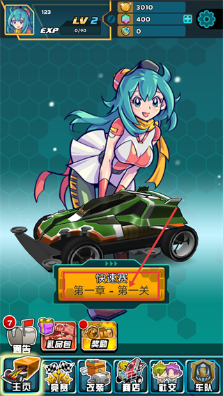1、进入游戏后,点击【快速赛-第一章-第一关】,开启四驱车竞赛,逐步解锁后续关卡,提升竞赛体验。