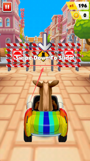 1、开启跑酷准备:进入游戏后选择小马角色与对应车辆,明确 “躲避障碍、收集金币” 目标,了解道具使用与操作规则。