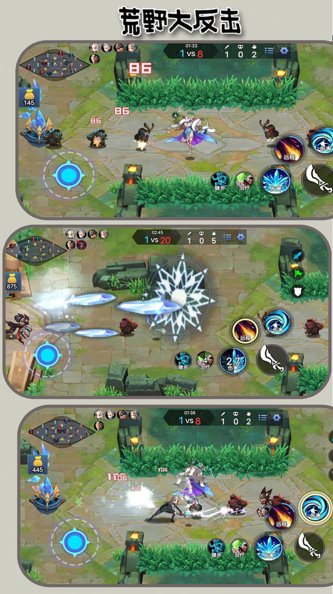1、实时对战:游戏采用实时对战模式,能够让玩家感受到真正的战斗紧张感。玩家需要不断地躲避敌人的攻击,同时还要寻找机会进行反击,才能获得胜利。