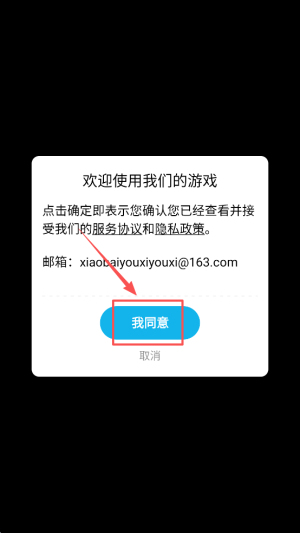 1、进入游戏:首先打开游戏主界面,点击“我同意”接受服务协议后进入游戏模式。