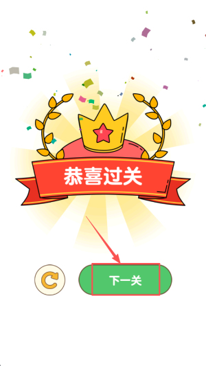 4、完成关卡:在恭喜过关界面点击“下一关”,继续挑战后续关卡。