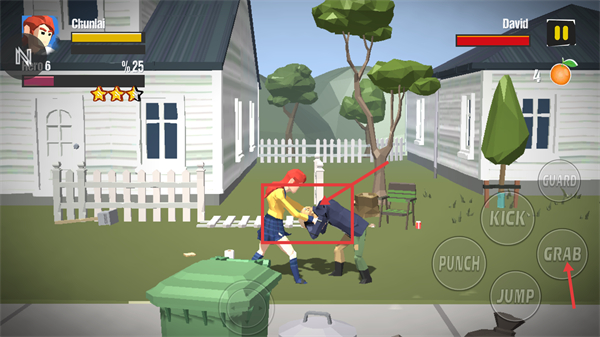 2、战斗时点击【GRAB】按键抓取敌人,配合攻防节奏,有效控制敌人并发起反击。