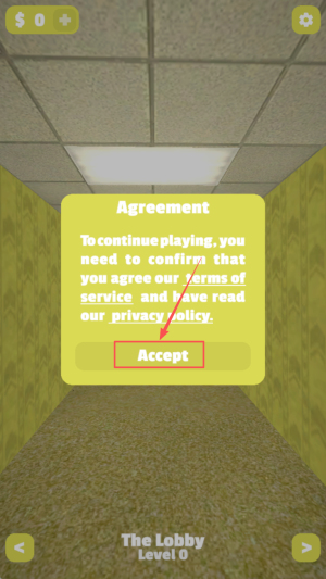 1、接受协议:点击“Accept”按钮接受服务条款和隐私政策,继续游戏。