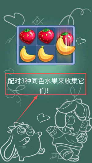 2、了解规则:阅读配对3种同色水果来收集它,点击继续。
