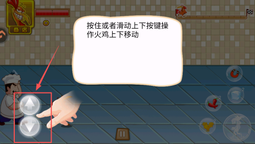 3、开始挑战:在按住或者滑动上下按键操作界面上下滑动控制火鸡移动。