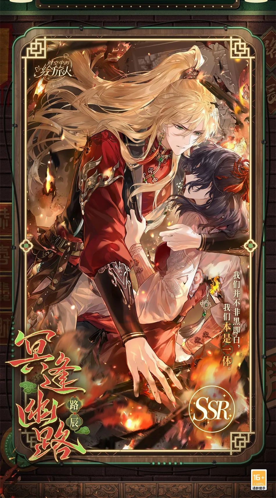 常驻累充新增叶瑄SSR[镜言],达112880积分即可领取该画灵。叶瑄SSR[镜言]包含5段[卡组剧情]和内部自带的私语,了解他自身对当初之事的看法