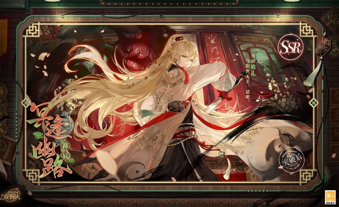 ? 活动SSR突破后为动态横幅卡面,拥有场景特效的流光效果,可设为登录界面。
