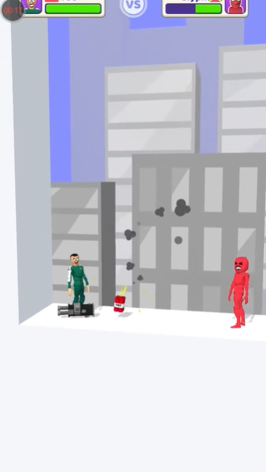 3、按住并滑动屏幕出现抛物线,将抛物线对准你的对手,松开手指即可使用武器攻击敌人