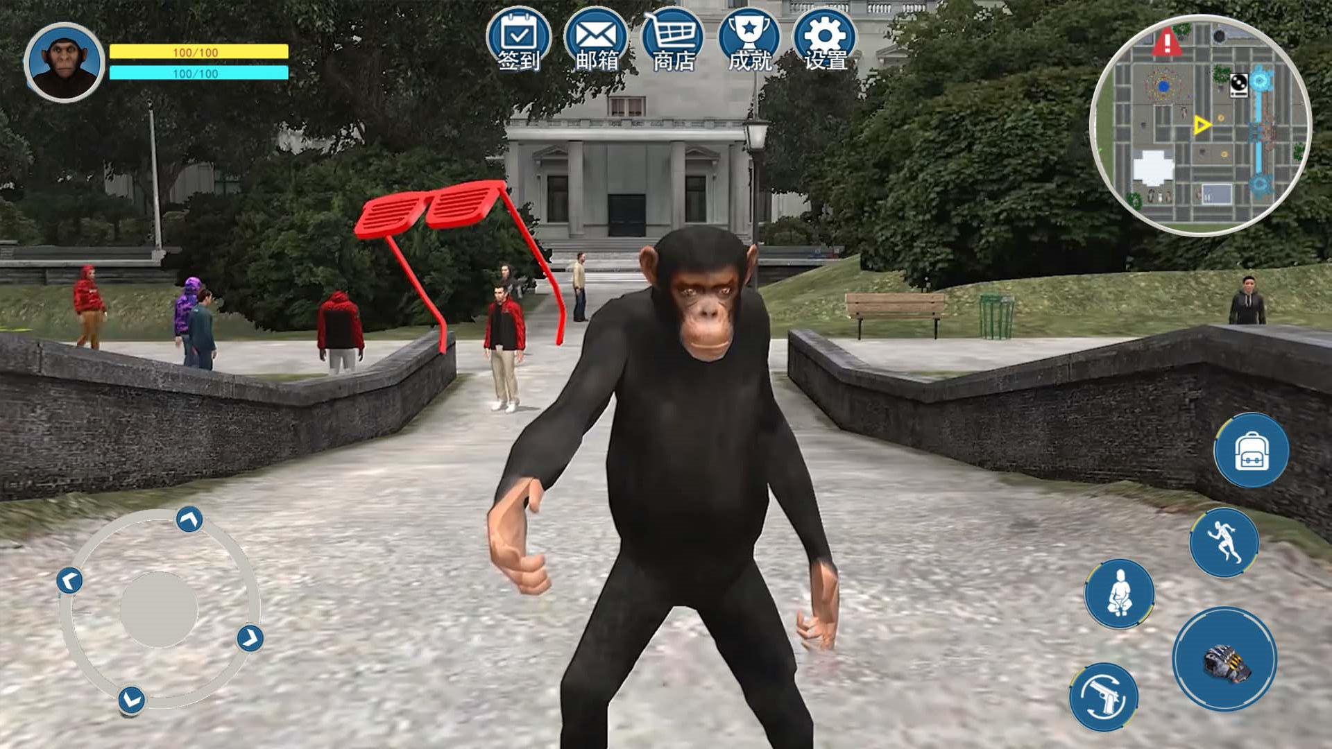3、多彩玩法:丰富多彩的游戏玩法,大猩猩可以攀爬建筑物、跳跃翻滚、使用道具和技能等,带来刺激多样的游戏体验。