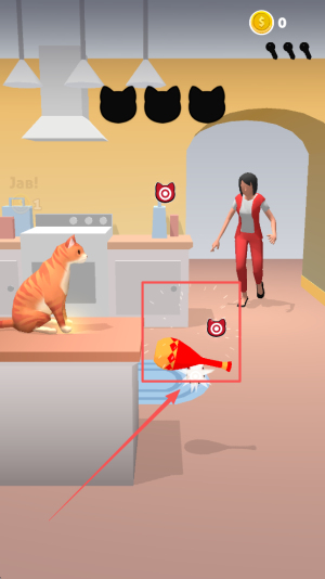 1、开启闯关准备:选择目标场景,熟悉手指点击操控猫咪的方式,观察主人活动范围与物品分布,明确 “捣蛋不被抓” 的核心目标。