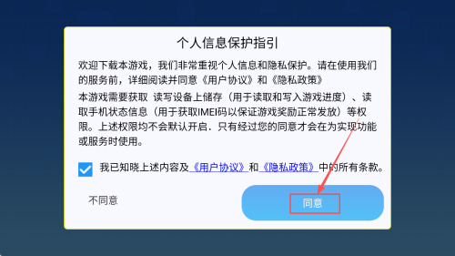 1、同意协议:点击“同意”按钮,接受用户协议和隐私政策。