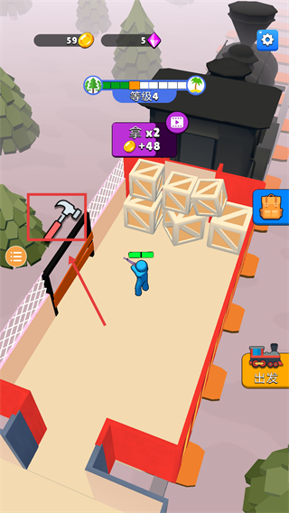 4、等级提升至4级后,获取锤子类道具(可用于破坏场景障碍物),也可选择观看视频获取“拿x2+48金币”的额外奖励,丰富资源储备。