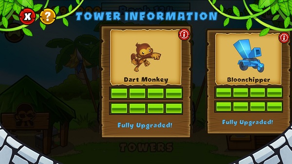(每发飞镖可以攻击2个气球)→(每发飞镖可以攻击3个气球)→(每次可以发射三枚飞镖)→(增加“变身”技能,把攻击范围内的飞镖猴变成超猴)