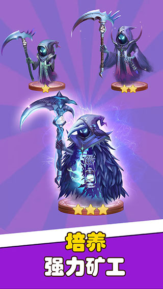 3、矿工获取:多种不同的矿工角色玩家可以在游戏中进行获取,不同的矿工有着自己独特的角色技能,让玩家自由组建自己的游戏阵容。