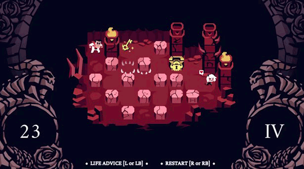 Helltaker是一款美漫风格的地牢冒险RPG游戏,游戏玩法主要是俯视角推箱子,配合一些奇奇怪怪的机制与解密,让这款游戏推箱子的可玩性上了一个档次,在解密的最后会与各种白毛恶魔对话,回答正确就可以收为后宫,回答错误的话嘛会知道什么是恶魔。游戏中玩家将扮演一名猛男,穿过地狱中的重重机关,并在地狱中化身把妹高手俘获所有少女的心。而随着游戏进度的深入,谜题的难度也会逐渐提升,出现新的机制,按理来说需要玩家发挥聪明才智才能过关。