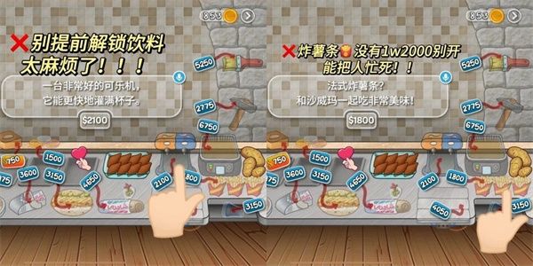 (3)除设备店员以外的东西尽量越迟升越好(卷饼口味升级这个一定一定要放到最后,超级麻烦且很容易点错,很锻炼大脑)