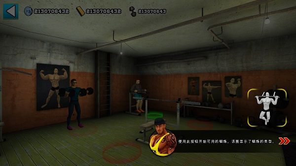 游戏中玩家的选择多样且器材众多,拥有非常全面的工具设施,你在画面中能看到哑铃、沙袋、跑步机等设施,玩家大可以一一尝试一番。