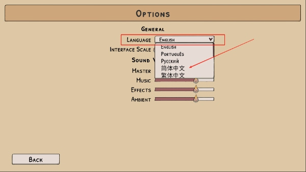 1、本站下载打开风之峰游戏,进入首页点击options;