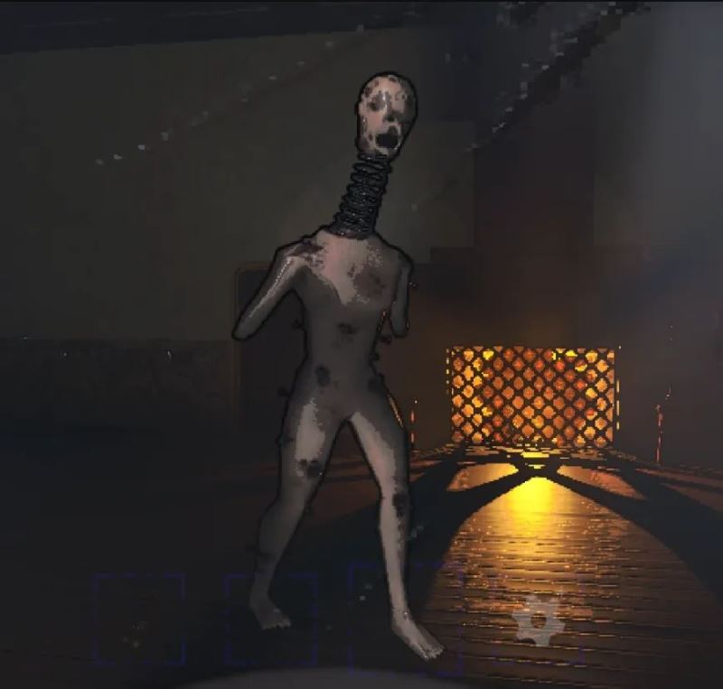 这种人形生物,长满尖刺和发光的白眼,潜伏在室内,试图偷偷接近你。