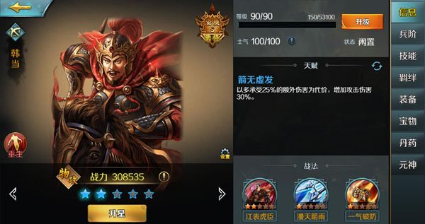首先,韩当是一名物理攻击英雄,那么我们可以先把策略攻击的战法,以及增加防御能力的战法统统排除掉。