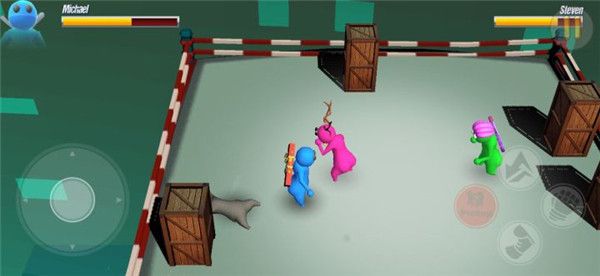 基佬大乱斗官方正版是一款超级好玩的橡皮人动作格斗类游戏。这款游戏在steam上有着超多的粉丝,相信很多小伙伴都有玩过这款游戏,而现在它拥有了手机版本,玩家可以在手机上感受到橡皮格斗的乐趣。在这款游戏中玩家需要做的就是控制自己的角色不断的在擂台上战斗,击败所有的橡皮人,最终站在场上的橡皮人就是胜利者。这款游戏的画面也十分Q萌有趣,游戏角色都是橡皮人,而且都是男性角色,看起来都十分搞怪,所以也叫作基佬对战。而且游戏的操作很简单。玩家可以控制角色前后左右移动,拥有多个技能,不管是攻击、跳跃、拳击、踢脚都没问题。而且玩家还可以通过两个按键同时按,触发组合技能,组合技能拥有特殊的动作画面和不同的伤害,感兴趣的玩家可以来本站下载该游戏体验一下吧。