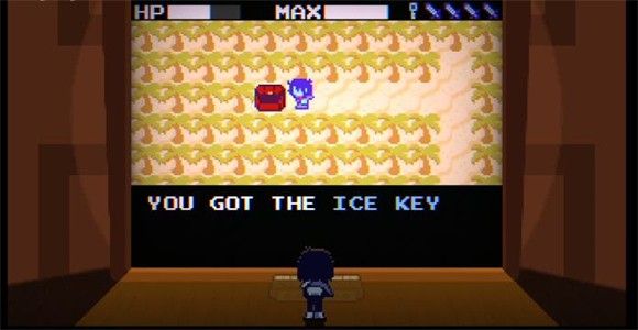 2、当把宝剑升满后,向地图左上角区域一路挥砍,会遇到一个宝箱,打开宝箱会获得道具ice key,拾取道具后游戏机就会关闭,只有完成第二轮的游戏才可以继续游玩。第二轮也是需要拿到S评分的,如果拿不到就无法进入房间。