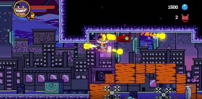 5、四处跳跃,探索疯狂的关卡,射击并躲避敌人。