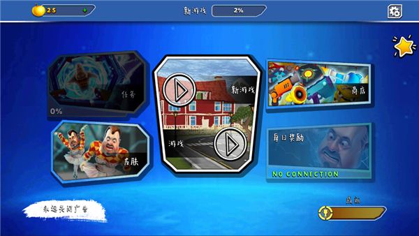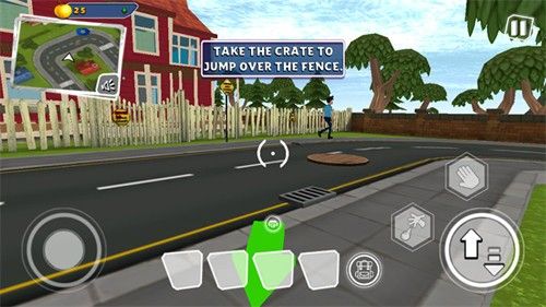 2、我们进入游戏当中,开局的第一局都是会被邻居抓住的,游戏里面也有好多小道具都可以用来对付邻居,滑动屏幕可以观看四周;