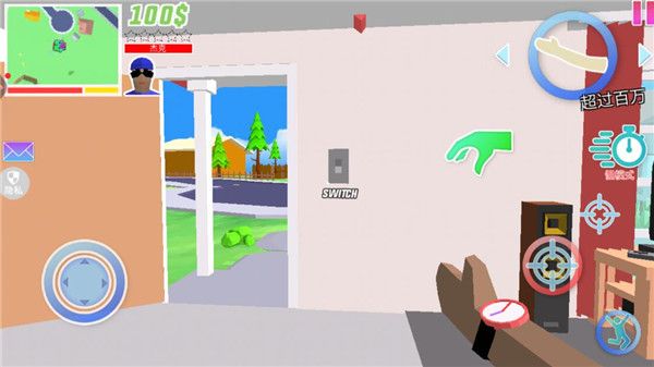 4、玩家可以控制角色在房间外面的世界中自由的探索,可以用各种工具袭击路人,比如木棒枪支 弹药等