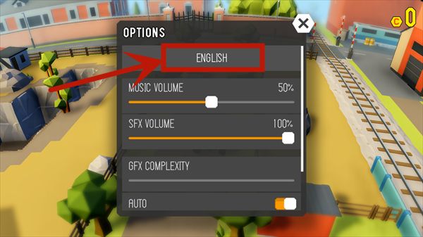1、打开鲁莽大逃亡2最新版,进入游戏首页,可以看到游戏默认为英文,选择右下角【齿轮】图标,
