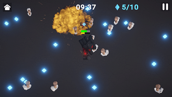 4、TITAN SPEAKERMAN中,玩家可以使用火箭炮轰炸场景内的马桶人,收集方块,体力耗尽便结束游戏。