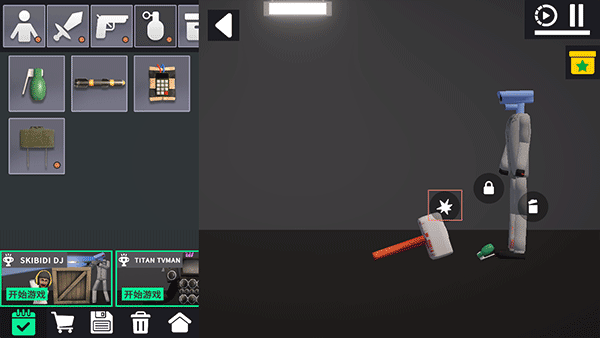2、任意选择一个玩法进行点击,在此模式中玩家可以随意添加人物以及障碍物,拖动道具对其进行攻击,非常解压。