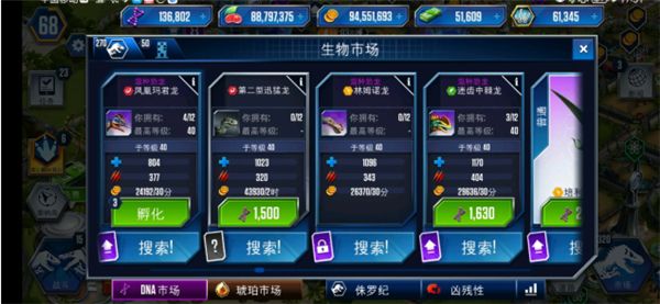 DNA,食物,金币,现金是伙伴们畅玩《侏罗纪世界》手游的必备物资,有了它们,你才能在疯狂升级的路上一骑绝尘,因此,伙伴们先学习如何更快收集物资吧。