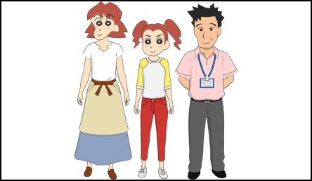 从左起分别是黑发美子、山田摩多、青山三郎、青山次郎、青山一郎、青山绮、银河忍。