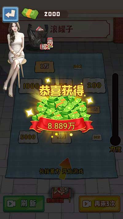 5、滚到的钱就都是你的囊中之物啦,虽然就这个机会只有三次,但是你可以点击右下角再来三次,可免广告获取更多机会。