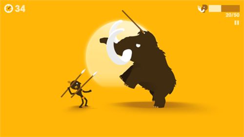 2、玩家在游戏中需要扮演一名部落族长,带领自己的族人使用长矛等武器狩猎猛犸象。玩家要将长矛向猛犸象掷出,同时还要小心不被猛犸象撞到,否则便会任务失败。