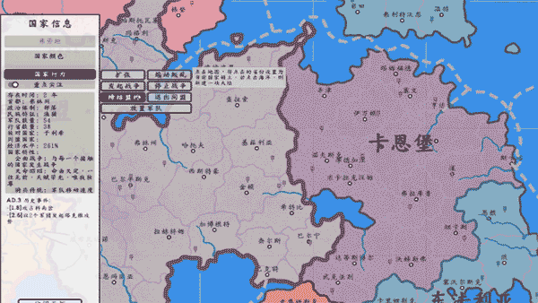 2、历史长河的缩影,模拟国家间的复杂交往与纷争,让您静观不同国家的变化仿佛置身历史事件当中,让自己从游戏中学习到不同的历史知识。