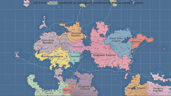生动的国家模拟:模拟国家间的外交、发展和战争,观察数百乃至上千年的历史演变,就这么看着就好。