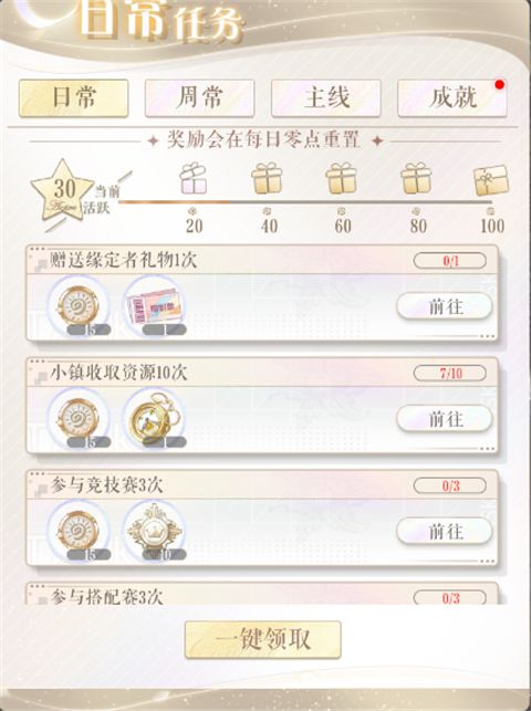 每日任务都可以直接点前往进行任务,非常方便的哦,而我们获得的活跃度每达到一个数值就可以获得相应的奖励礼包的。