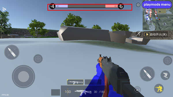 1、还原了经典的PC战地模拟器操作方式,玩家可以在这里使用枪 械射击远处的敌人,用 颜色很容易区分这些红色的小人,射击他们获得积分,然后赢得对战胜利吧;
