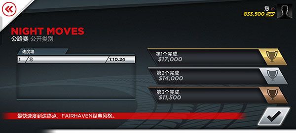 极速:极速指的是赛车在无桩基以及非漂移状态下所能达到的极限速度,是一场比赛制胜的关键。