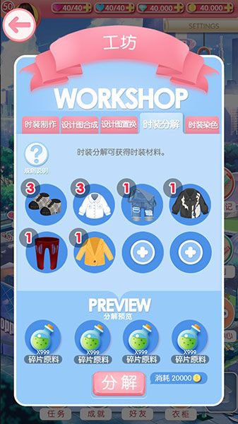 1、工坊中可以消耗设计图,制作出对应的美丽时装。