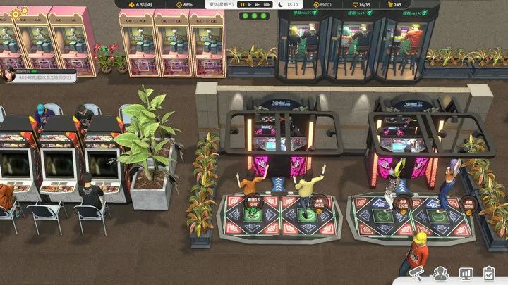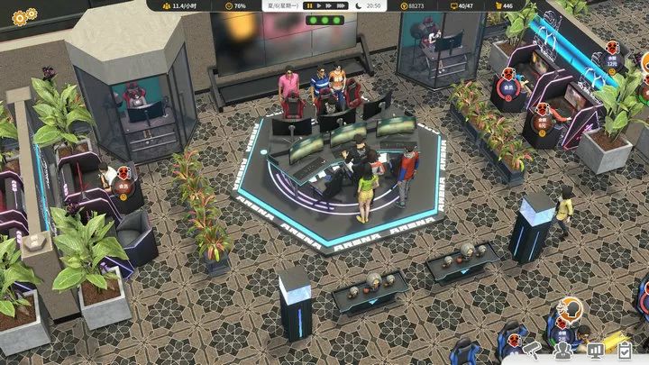 在你的网吧里建设各种区域,合理摆放各种装饰和桌椅电脑,让顾客们都满意。
